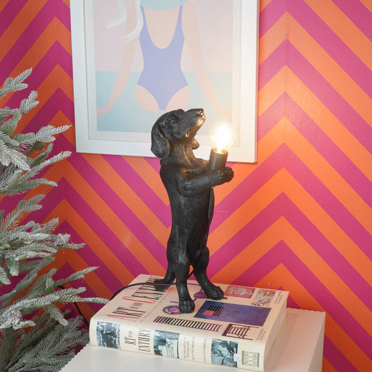 Mäyräkoira-pöytävalaisin, Valkoinen