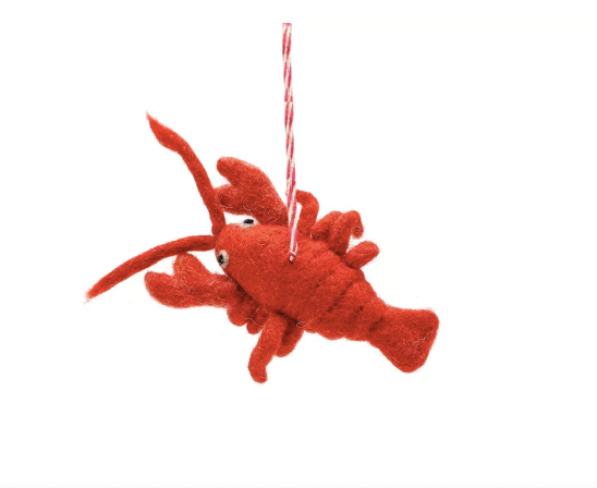 Hauska ja räikeän punainen Hummeri joulukoriste. Tämä pörröinen Hummeri on rakkaudella valmistettu pehmeästä huovasta ja on väriltään punainen, se roikkuu hellävaraisesti punavalkoisesta nauhasta, ja se on valmis ripustettavaksi joulukuuseen.