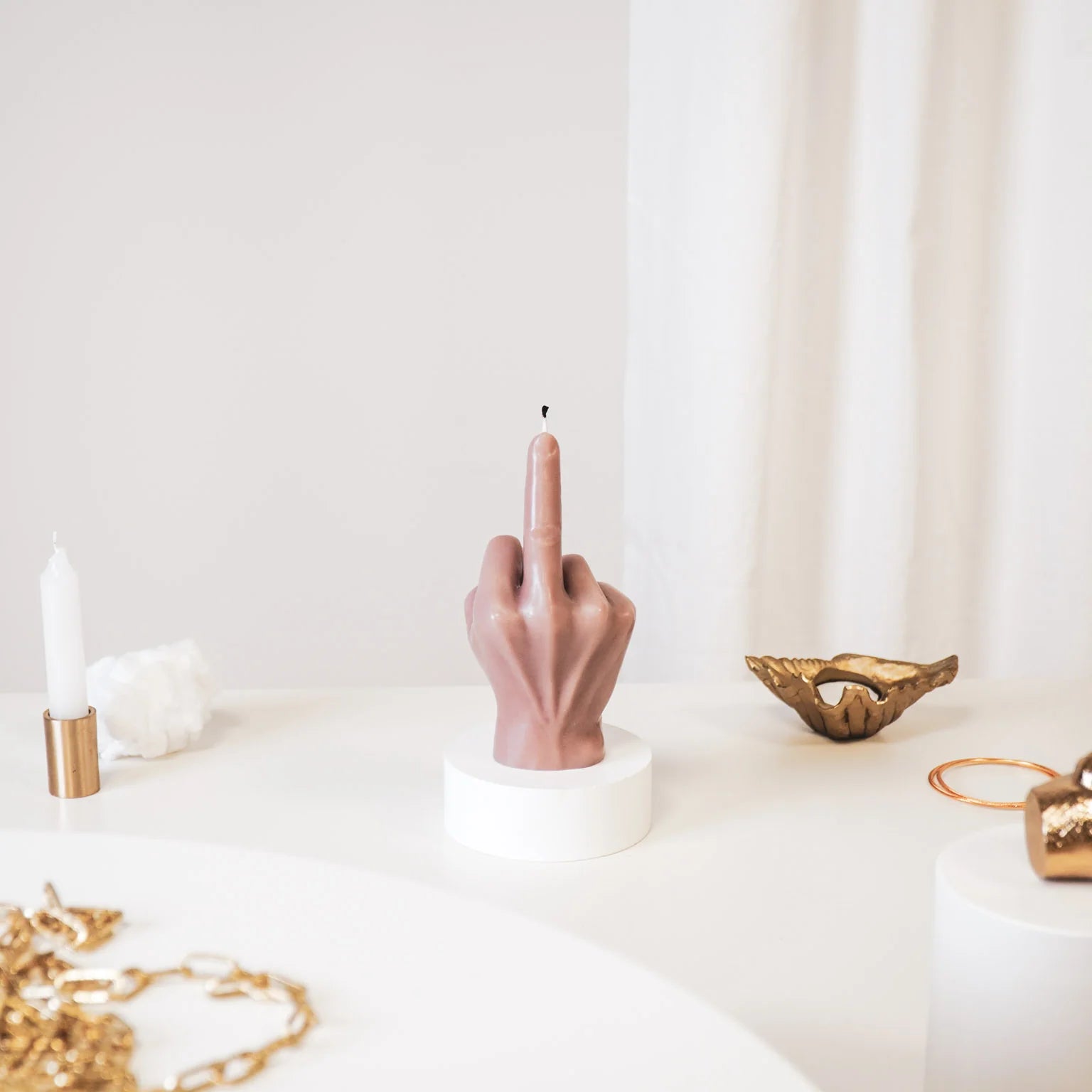 Etsitkö ainutlaatuista sisustuselementtiä kotiisi taikka täydellistä lahjaa huumorintajuiselle ystävälle? Miten olisi keskisormen muotoinen kynttilä! Anna kynttilän sanoa "F#ck You" tai käytä sitä hauskana lisänä sisustukseesi. Valinta on sinun!