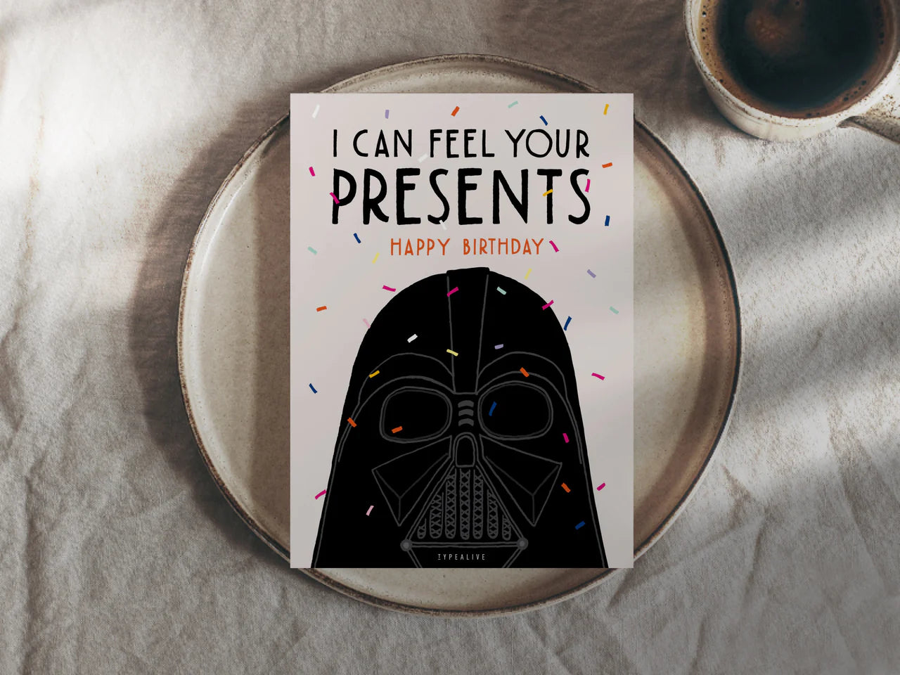 Tämä hauska onnittelukortti on täydellinen esimerkiksi tähtien sota fanille,
