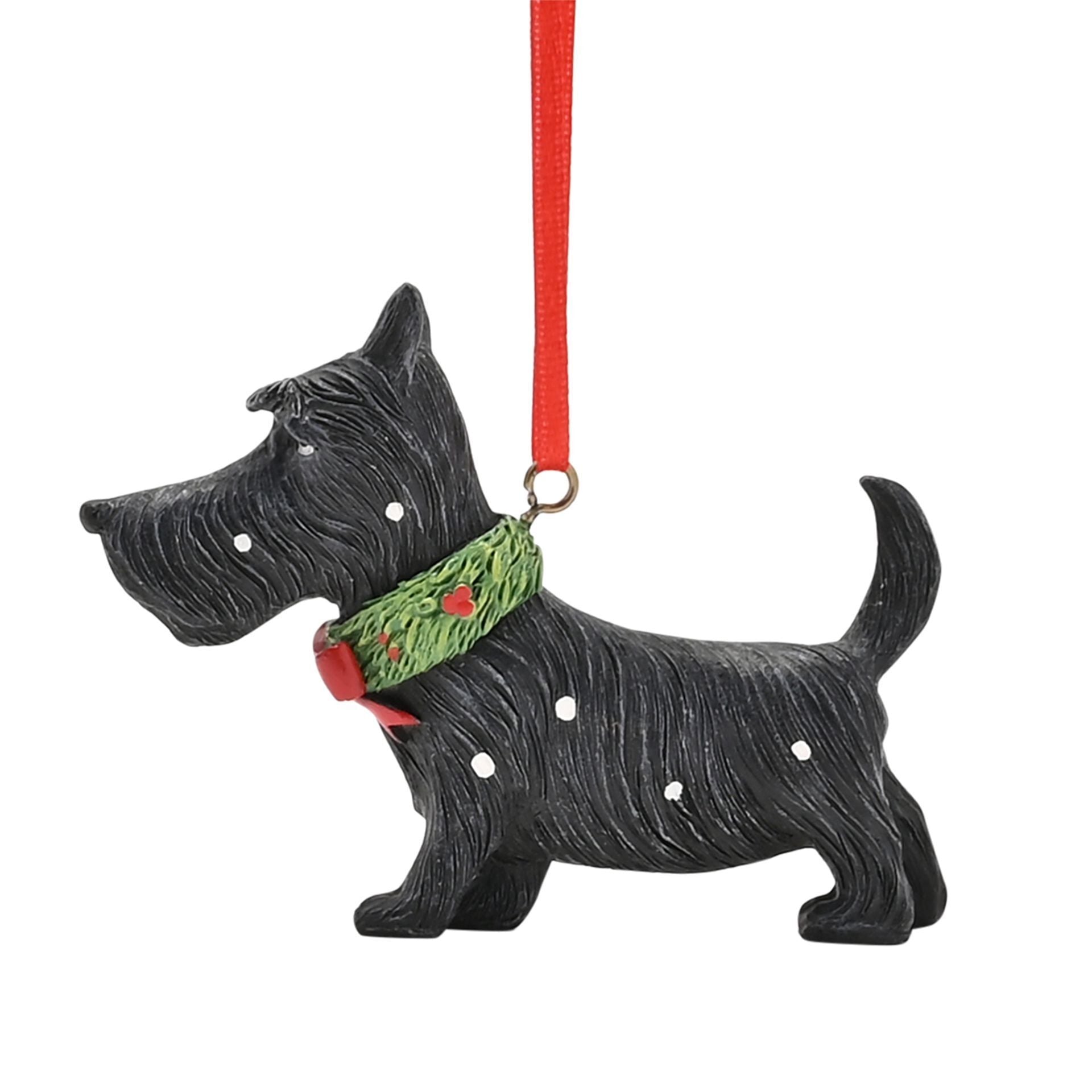 Viehättävä ja hienoo Jouluiseen kaulapantaan pukeutunut Skotlanninterrieri - tämä joulukuusenkoriste on suloinen lisä tänä jouluna joulukuuseen, tämä koiruli on täydellinen lisä kaikille koira-ihmisille ja varsinkin, jos kotoa löytyy tuollainen ihana skotti.