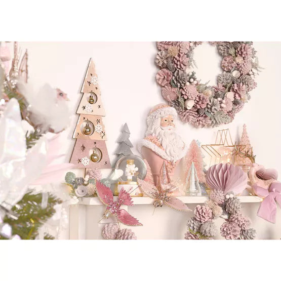 Joulupukki on tänä vuonna upeasti pukeutunut vaaleanpunaiseen ja trendikkääseen kullan yhdistelmään. Onko kotonasi ihania muita pastellin värisiä koristeita, tämä voisi kruunata kotisi tänä vuonna!