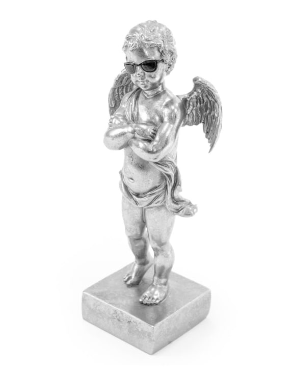 Kaunis ja ajaton hopea Kerubi -patsas, hauskana yksityiskohtana aurinkolasit. Tämä näyttävä koriste yhdistää klassisen eurooppalaisen tyylin vintage- ja retron hauskaan muotoiluun. Se on enemmän kuin pelkkä koriste, se on ainutlaatuinen sisustuselementti. Tuo kotisi sisustukseen omaleimaisuutta tällä koriste-esineellä.