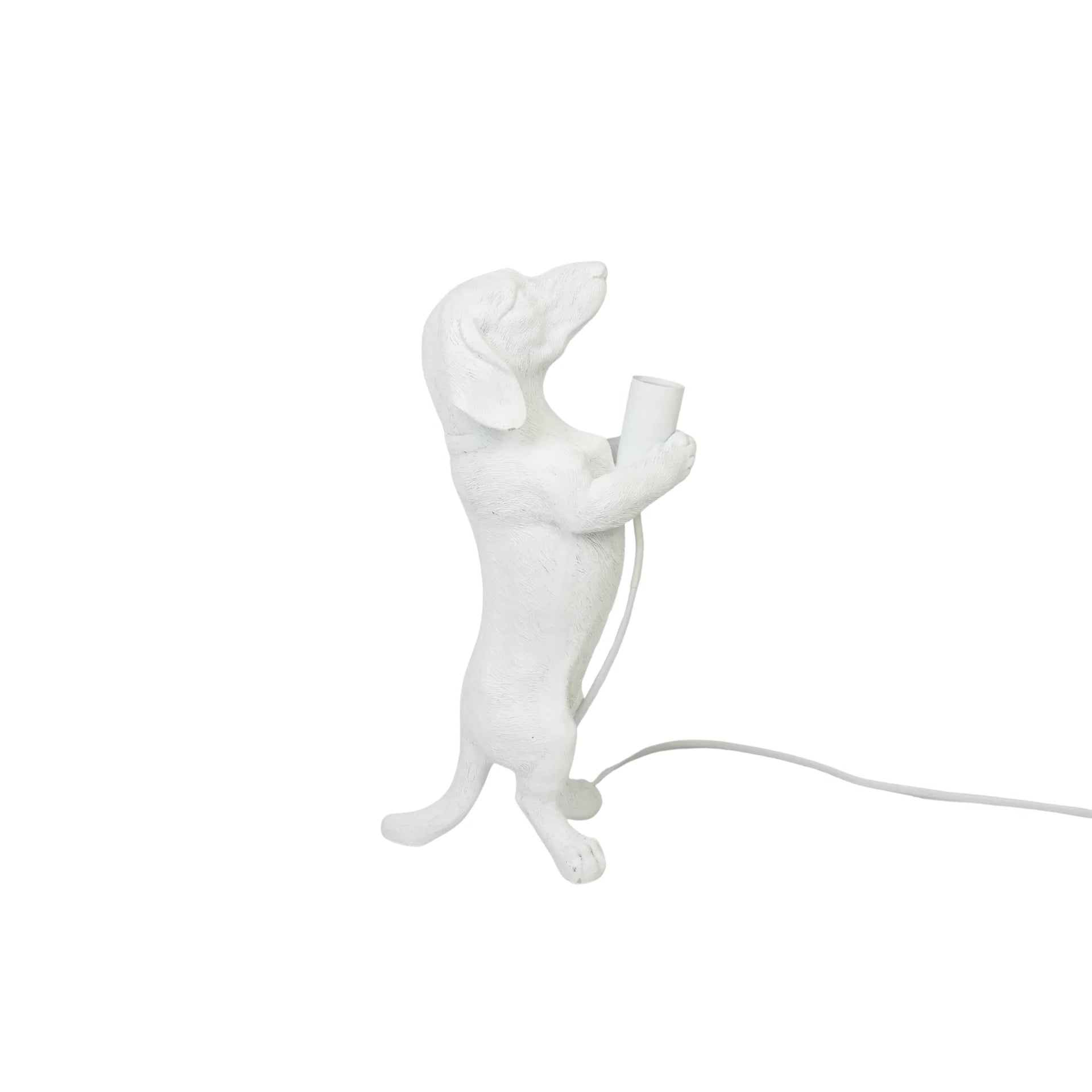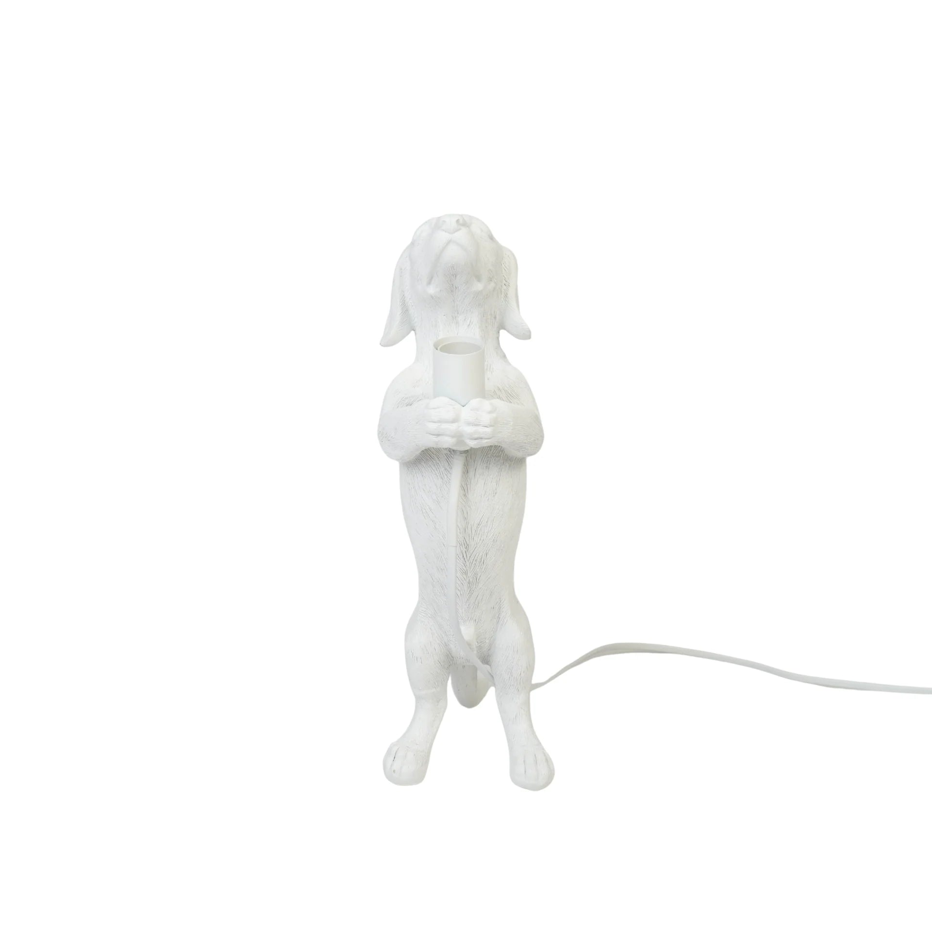 UUTUUS TULOSSA VARASTOON Mäyräkoira-pöytävalaisin, Valkoinen